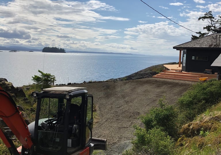 We build driveways and access that survive Island winters. Proper base, drainage, and grade so you can get in and out year-round without washouts, ruts, or surprise repairs.